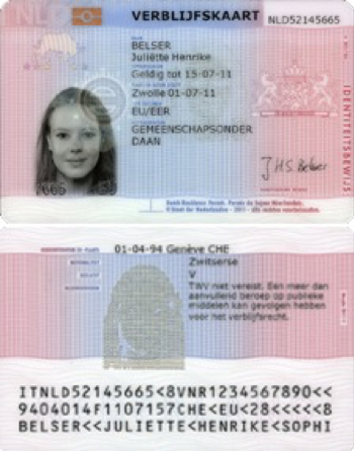 Let op: Een verblijfsvergunning dient de voor- en achterzijde ingescand te worden. Zie het voorbeeld hieronder.